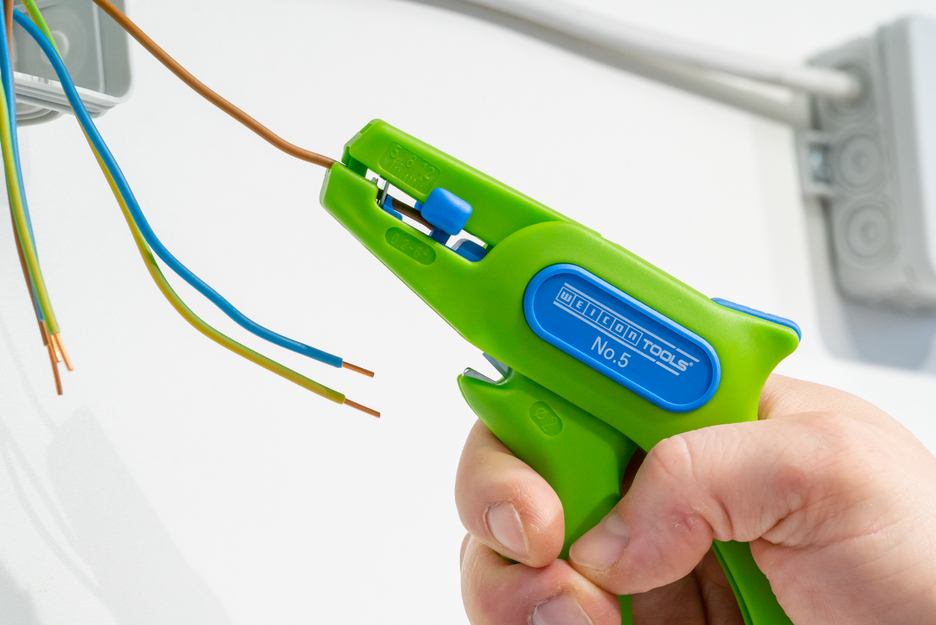 Mit der Green Line wurde eine ganz spezielle Werkzeugreihe entwickelt. Die Werkzeuge bestehen aus bis zu 97 % nachwachsenden Rohstoffen, sind recyclebar und verfügen über eine exzellente Ökobilanz. Die WEICON-Abisolierzange No. 5 kann alle flexiblen und massiven Leiter von 0,2 - 6,0 mm² abisolieren. Die Zange verfügt über einen verstellbaren Längenanschlag von 5 - 12 mm. Der Längenanschlag kann bei Bedarf herausgenommen werden. Ein gut zugänglicher Seitenschneider ist in das Werkzeug integriert, der bis zu einem Kabeldurchmesser von 2 mm genutzt werden kann. Die Klingen sind wechselbar. Das geringe Gewicht der No.5 sorgt für ein ermüdungsfreies Arbeiten.