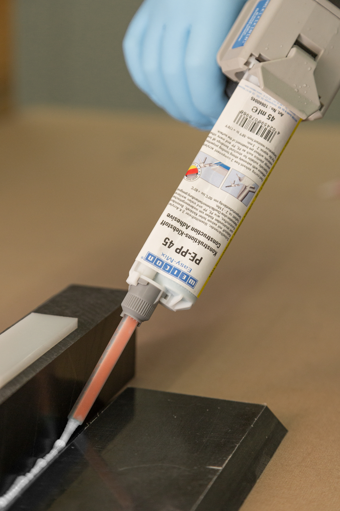 WEICON Easy-Mix PE-PP 45 je 2-zložkové konštrukčné lepidlo na báze metylakrylátu. Je obzvlášť vhodné na konštrukčné, vysokopevné lepenie nízkoenergetických plastov ako napr. PE, PP, PA a TPE. Nie je potrebná žiadna predúprava, pretože základný náter „integrovaný“ v lepidle aktivuje povrchy a umožňuje vysokopevnostné spojenie. Na spracovanie produktov Easy-Mix v 50 ml balení je potrebná dávkovacia pištoľ Easy-Mix D 50.