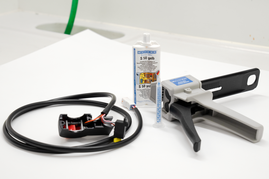WEICON Easy-Mix S 50 žltá je vysoko reaktívna zalievacia zmes, ktorá sa vďaka svojej silnej priľnavosti a rýchlemu vytvrdzovaniu môže použiť aj ako lepidlo. Systém epoxidovej živice, ktorý je odolný voči vysokým teplotám do +180 °C, je viskózny, samonivelačný, rýchlo tvrdne a je odolný voči nárazom. Zalievacia hmota má krátku dobu spracovateľnosti 4-5 minút. Hmota veľmi dobre priľne k širokej škále povrchov, ako je kov, plasty, plasty vystužené sklenenými vláknami, sklo a keramika. Používa sa v elektronike na ochranu elektronických komponentov, polovodičov a zostáv. Chráni komponenty pred vlhkosťou, prachom a nečistotami, ako aj pred mechanickým zaťažením. Easy-Mix S 50 žltý je vhodný na použitie v rôznych oblastiach, napr. na zalievanie v elektrotechnickom a elektronickom priemysle, na zalievanie káblových spojov, na práce v izolácie a izolačnej technike, v kovovýrobe, pri stavbe kontajnerov a prístrojov, pri stavbe armatúr a vo vetracej a klimatizačnej technike. Vďaka svojej nápadnej žltej farbe uľahčuje Easy-Mix S 50 žltá vizuálnu kontrolu. Zalievacia zmes sa spracováva pomocou užívateľsky prívetivého systému Easy-Mix. Na spracovanie produktov Easy-Mix v 50 ml balení je potrebná dávkovacia pištoľ Easy-Mix D 50.