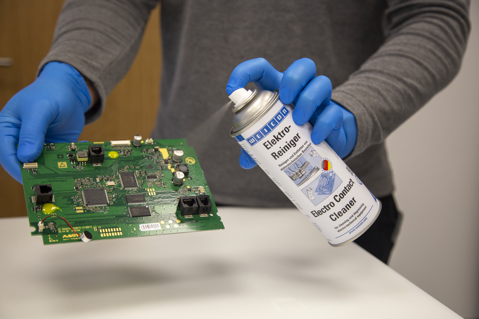 WEICON Electro Contact Cleaner is a special cleaner for the fast and effective cleaning and degreasing of all kinds of soiled or corroded contacts. It was specially developed for the cleaning of electronic and mechanical components. The special formula with high-purity solvents removes oxide/sulphide layers, combustion residues and resinous or sooty soiling. WEICON Electro Contact Cleaner reduces voltage loss and increases electric conductivity. Contamination that can cause surface leakage current is removed. WEICON Electro Contact Cleaner can be used on electrotechnical or mechanical components, such as electrical machines, measuring instruments, tools, balances, switches and sensors or electrical connections, contacts, relays and switchboards.