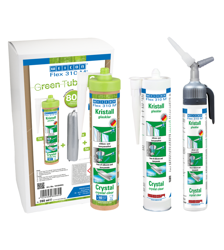 WEICON Flex 310 M Crystal je transparentný, má silnú priľnavosť, môže sa prelakovať "mokré do mokrého", má vynikajúcu odolnosť proti starnutiu, dobrú UV-stabilitu, neobsahuje silikón, izokyanát, halogény ani rozpúšťadlá. Má certifikát ISEGA a môže sa používať ako lepidlo v potravinárskej technológii. Flex 310 M Crystal je elastické lepidlo na báze MS-polymérov a je vhodné na lepenie skla, PC* a akrylového skla*, kovov, mnohých plastov, keramiky, dreva a kameňa. Výrobok je po vytvrdnutí krištáľovo číry a je vhodný najmä na elastické spoje, kde lepidlo nemá alebo nesmie byť viditeľné. Môže sa používať pri spracovaní plastov, v kovovýrobe, pri výrobe kontajnerov a prístrojov, vo vetracej a klimatizačnej technike, v elektrotechnickom a osvetľovacom priemysle, pri výstavbe veľtrhov a obchodov a všade tam, kde nie sú vhodné silikóny alebo výrobky obsahujúce silikóny. (* = len lepenie bez napätia)