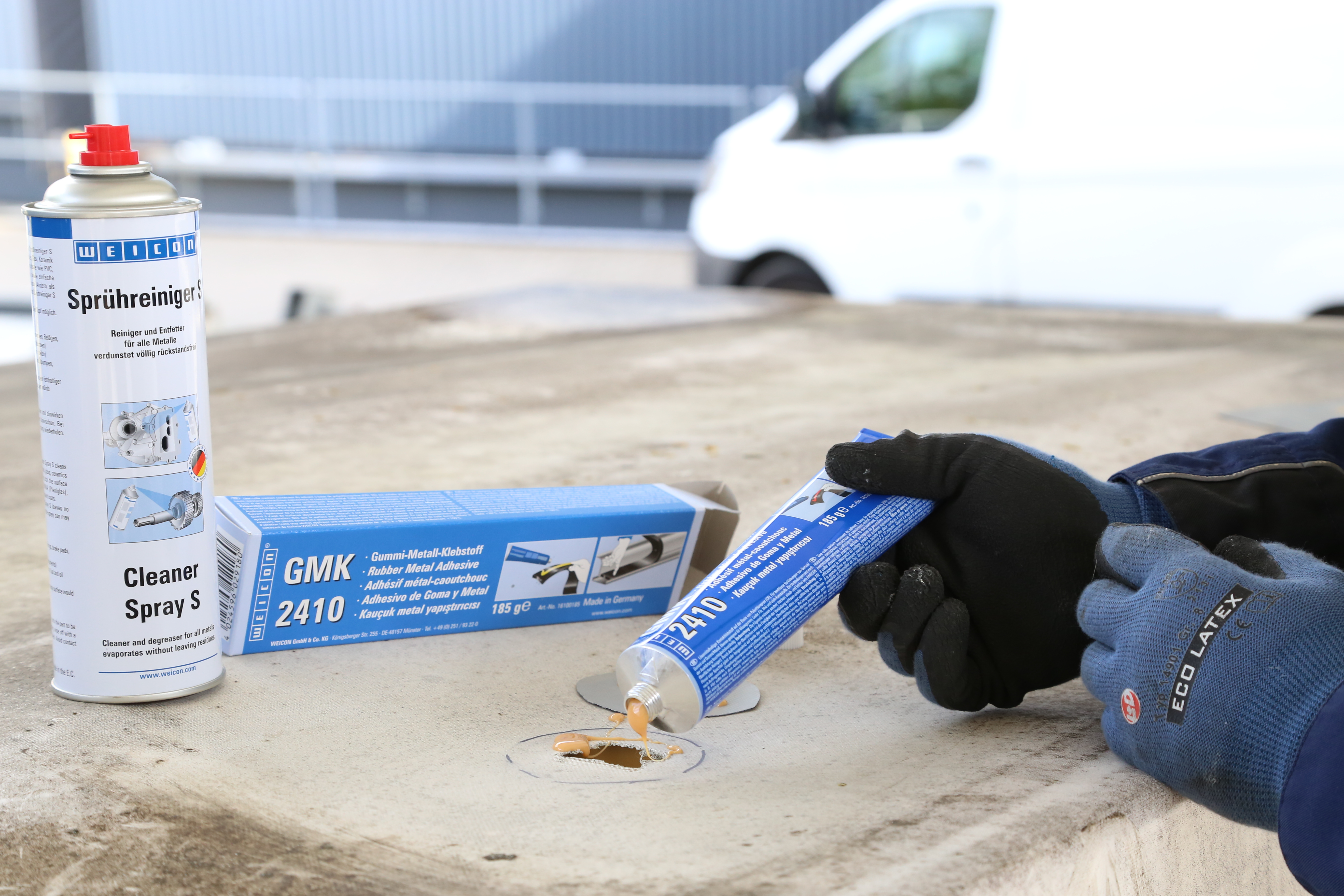 WEICON GMK 2410 je lepidlo na báze polychloroprénu (CR) s vysokou počiatočnou priľnavosťou na celoplošné a flexibilné lepenie: - guma na gumu - guma na kov GMK 2410 spája aj hubovitú gumu, PEpenu, kožu, plsť, izolačné materiály, textil, drevo a mnohé plasty. WEICON GMK 2410 nie je vhodný pre materiály, ako je penový polystyrén, polyetylén, polypropylénové diely, pružná PVC pena a PVC umelá koža.