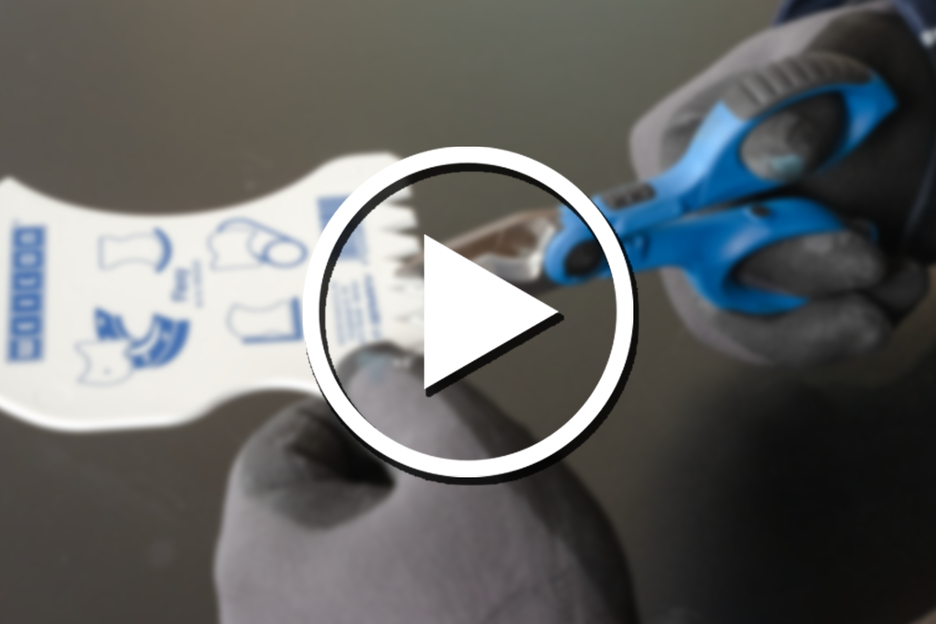 špeciálne tvarovaná špachtľa pre cielené obloženie kontúr
