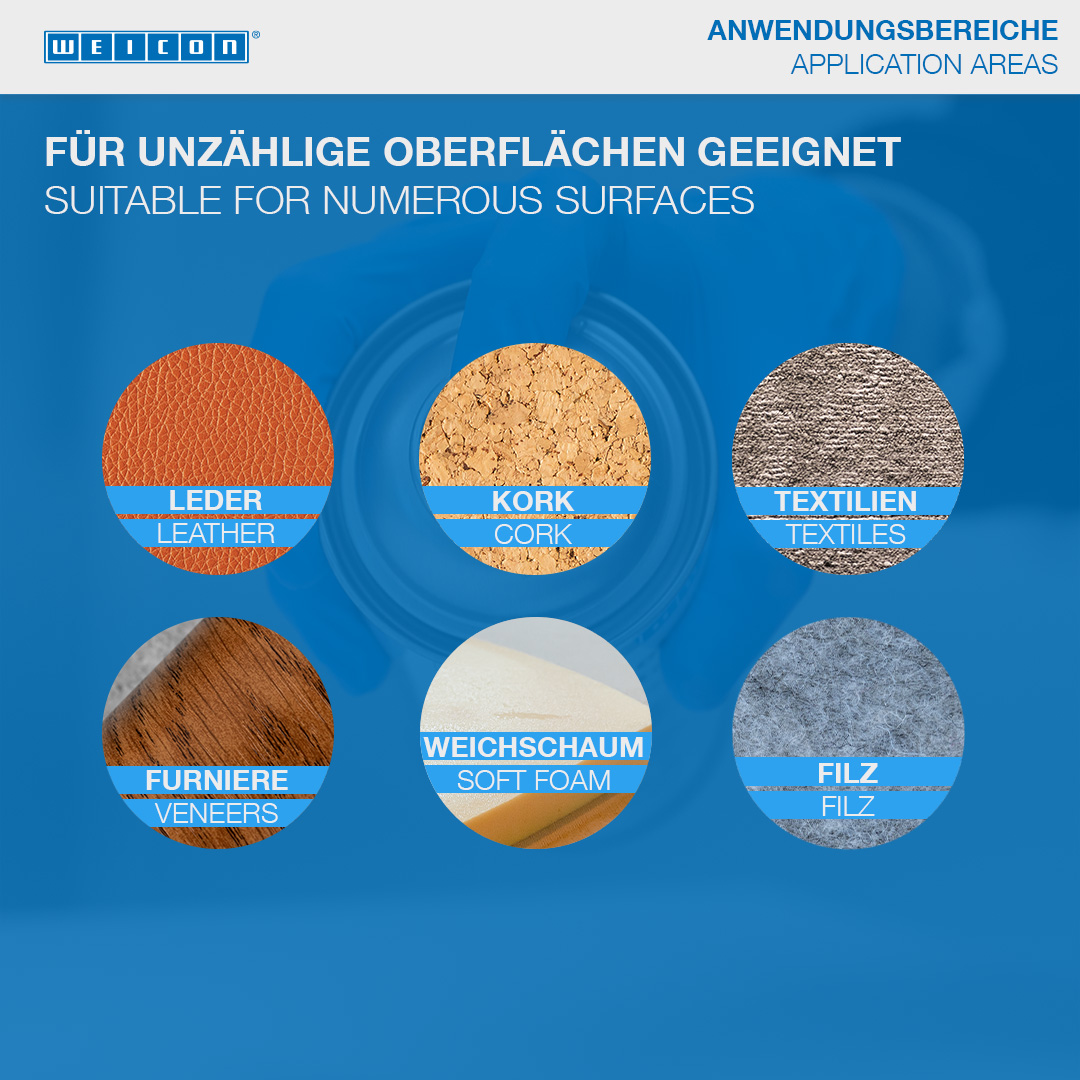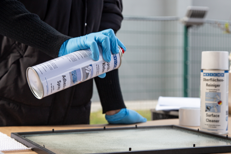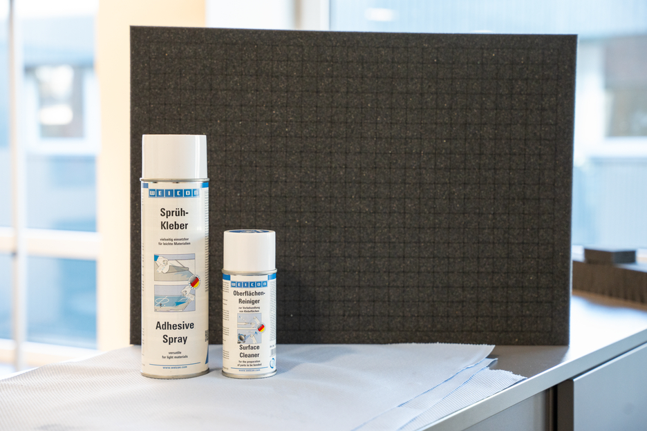 WEICON Lepidlo v spreji je univerzálne lepidlo na vzájomné spájanie ľahkých materiálov. Lepidlo v spreji je vhodné pre lepenie mnohých materiálov ako je papier, kartón, lepenka, drevo, mäkká pena, guma a penová guma, plastové fólie (okrem PVC a polyetylénu) a je najmä vhodné pre lepenie tvrdej peny (napr. polystyrén).