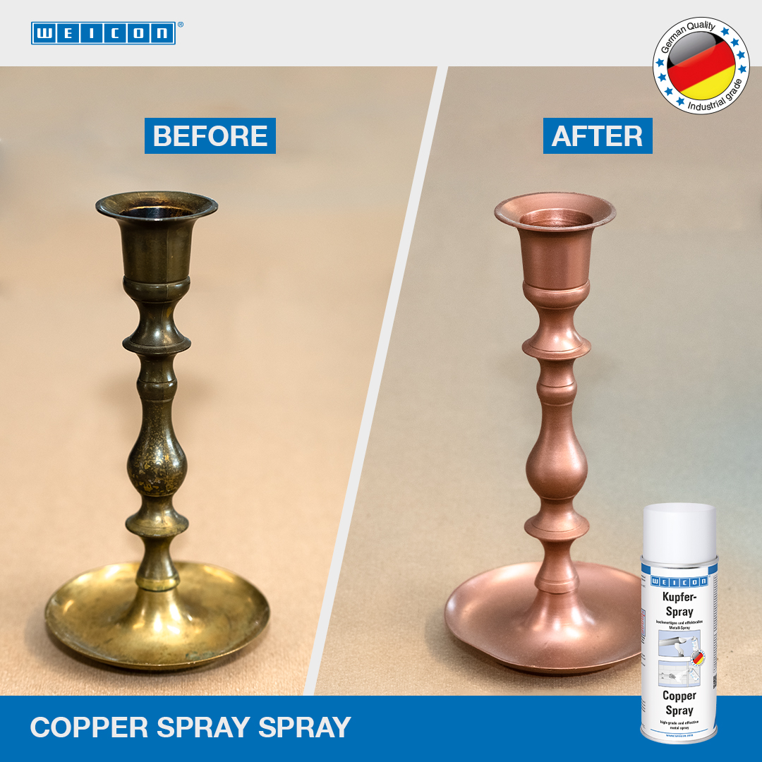 WEICON Meď-sprej je vysoko kvalitný kovový sprej s dobrou priľnavosťou, s vysokým podielom medi, pre ochranné a dekoratívne povlaky, s efektným charakterom farebného kovu, pre vonkajšie aj vnútorné použitie. Slúži tiež na optické zvýraznenie (ako meď) povrchov rôznych materiálov, dielov. Meď-sprej je možné použiť na okenné plechy, odkvapy a zvody, vonkajšie osvetlenie, poštové schránky, na dekorácie a pre umeleckú tvorbu.