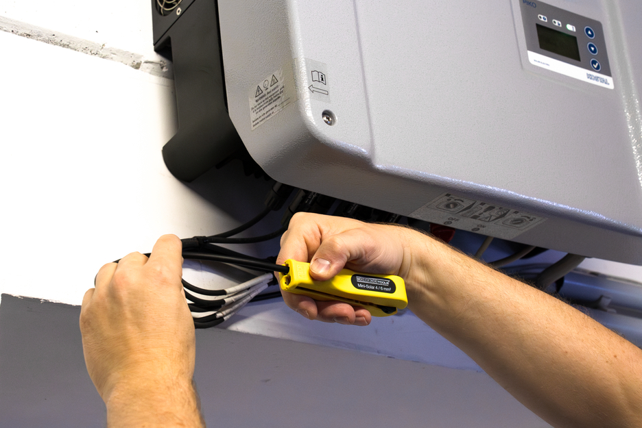 Odblankovač Mini-Solar 4/6 mm² umožňuje rýchle a jednoduché odizolovanie solárnych káblov s prierezom vodiča 4,0 alebo 6,0 mm². Hĺbku rezu nie je potrebné nastavovať. Nástroj má integrovaný dĺžkový doraz od 6 do 28 mm. Odblankovač vystužený sklenenými vláknami má aj ľahko prístupný bočný rezač na káble do 10 mm². Použitie nástroja Solar vždy poskytuje presný tvar rezu pri odizolovaní. Mini Solar 4/6 mm² je navyše možné uzamknúť a uložiť, aby sa ušetrilo miesto.
