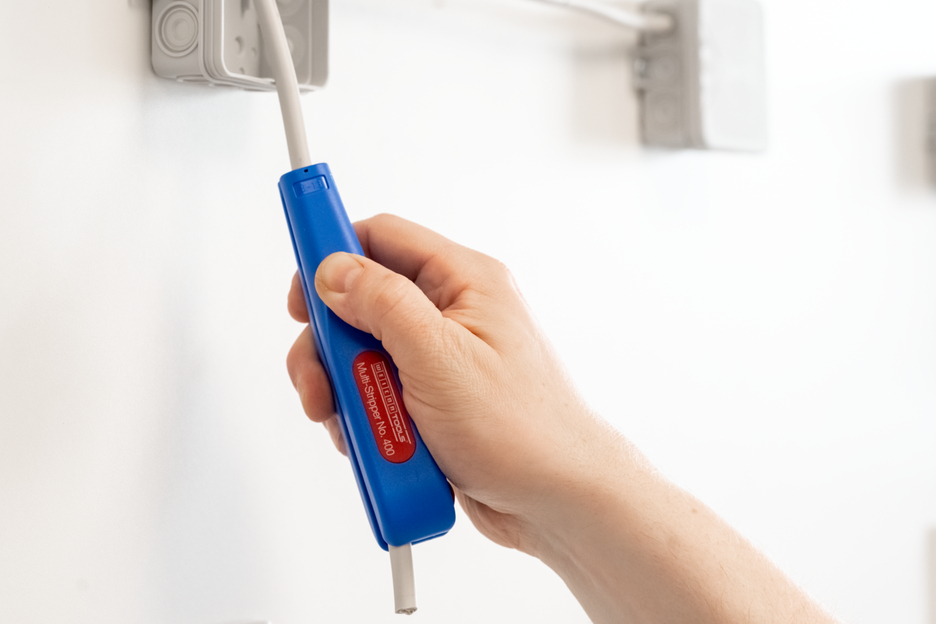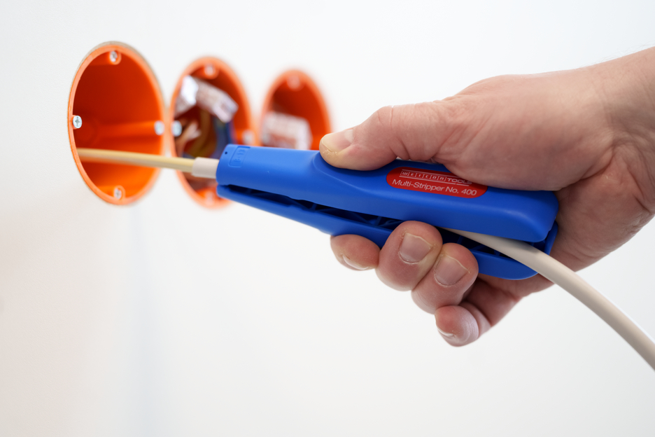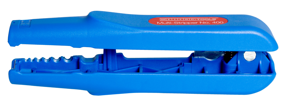 WEICON Multi Stripper No. 400, univerzálny odizolovací nástroj pre funkcie: kruhový rez, pozdĺžny rez, odizolovanie a rezanie. Nástroj je možné použiť aj na ťažko dostupných miestach, napr. na stropné a stenové plochy, v rozvodných a rozbočovacích skriniach, ovládacích skriniach, káble možno jednoducho odizolovať. Kontúrovaciu čepeľ možno použiť na odizolovanie vodičov s prierezom 0,5 mm², 0,75 mm², 1,5 mm², 2,5 mm², 4,0 mm² a 6,0 mm². Do Multi-Stripper No. 400 je integrovaná aj ľahko prístupná bočná rezačka, ktorú je možné použiť pre flexibilné káble s priemerom do 6 mm (plné vodiče do priemeru 4 mm).