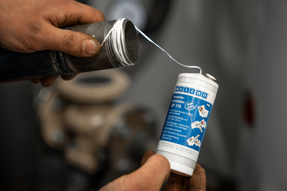 WEICON DF 175 je patentované tesnenie závitov, vyrobené zo 100 % PTFE a trvalo a bezpečne utesňuje takmer všetky kovové a plastové závity. WEICON DF 17WEICON DF 175 spoľahlivo vyrovná medzeru na závitoch a pri skrutkovaní vytvorí PTFE film požadovanej hrúbky. Tento film je mimoriadne odolný proti takmer všetkým chemikáliám, dokonca aj proti najagresívnejším rozpúšťadlám, zásadám a kyselinám. WEICON DF 175 je nehorľavý a funkčne spoľahlivý v rozsahu teplôt od -200 °C do +240 °C (-328 až +464 °F). Na rozdiel od iných tesniacich materiálov, kde tkanina slúži len ako nosič pre samotný tesniaci materiál, WEICON DF 175 je samotný tesniaci materiál. Oddelenie nosného a tesniaceho materiálu počas životnosti skrutkového spoja je preto nemožné. WEICON DF 175 má neobmedzenú trvanlivosť a zostáva vždy mäkký a poddajný. WEICON DF 175 je veľmi úsporný: Jednou rolkou možno nahradiť až 20 roliek PTFE pásky (12 mm x 0,1 mm x 12 m).