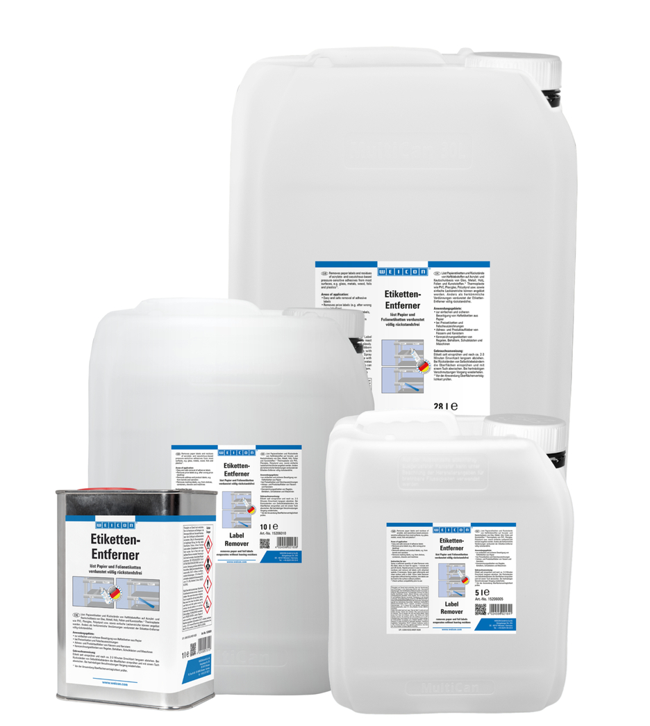 WEICON Odstraňovač etikiet odstraňuje ľahko a rýchlo papierové etikety a zvyšky lepidiel na báze akrylátu a kaučuku. Odstraňovač etikiet je vhodný pre väčšinu povrchov ako je sklo, kovy, drevo, fólie a plasty. Ľahko a rýchlo odstraňuje cenovky (napr. chybné výtlačky), odstraňuje nálepky s adresou, alebo popisom produktu, odstraňuje popisové etikety, zvyšky etikiet a lepidla, napr. po diaľničných známkach.