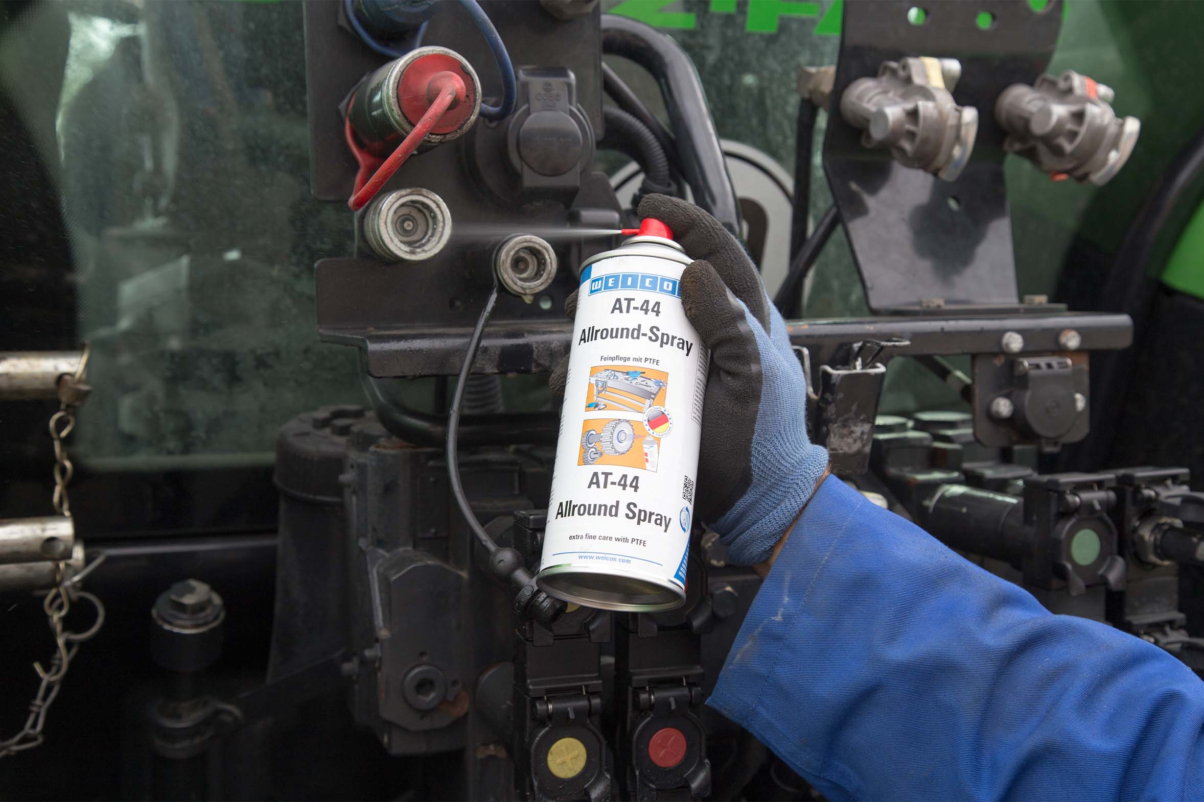 WEICON W 44 T Multi-Spray je ideálny na starostlivosť a mazanie spojok prívesov, hydraulických kĺbov a pohyblivých častí traktorov, kosačiek alebo lisov. Zabraňuje zadieraniu skrutiek na pluhoch alebo bránach a chráni reťazové pohony pred hrdzou. WEICON AT 44 Allround Spray s PTFE zabezpečuje dlhotrvajúce mazanie závesov na bránach, bowdenových lán v napájacích systémoch alebo ložísk v dopravníkových systémoch a znižuje opotrebovanie vďaka suchému mazaciemu filmu, ktorý odpudzuje nečistoty. Cielené používanie WEICON W 44 T a AT 44 umožňuje efektívnu údržbu strojov a zariadení, čím sa skracujú prestoje a znižujú náklady na opravy.