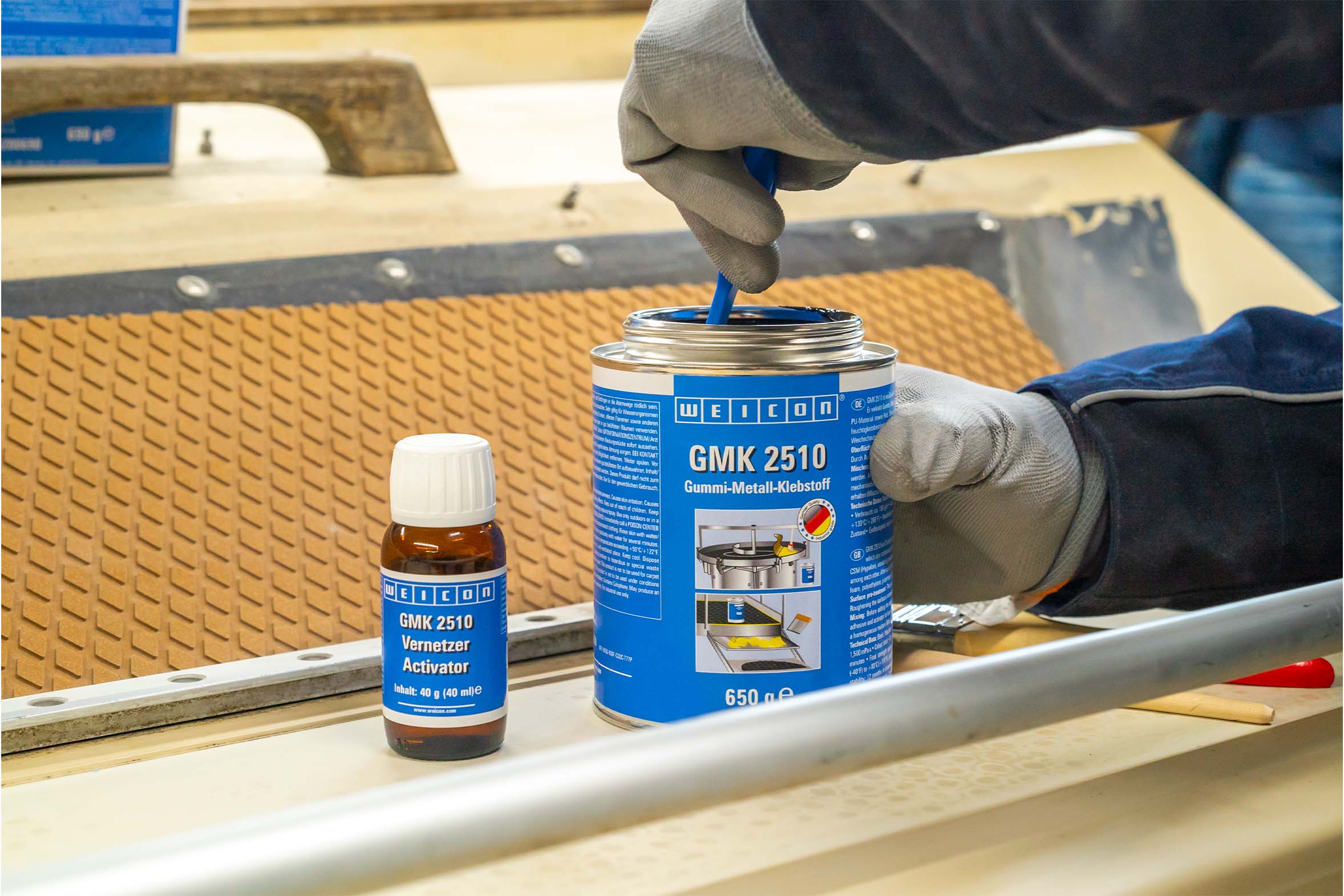 Pre obzvlášť náročné aplikácie ponúka WEICON GMK 2510 ešte vyššiu konečnú pevnosť a odolnosť. Používa sa predovšetkým tam, kde sa vyžaduje trvanlivý a vysokopevnostný spoj, napríklad pri oprave poškodených gumových povlakov na šnekových dopravníkoch, pri upevňovaní gumových podložiek na kovové konštrukcie poľnohospodárskych strojov alebo pri lepení obloženia chrániaceho pred opotrebovaním v miešacích zariadeniach na výrobu krmív pre zvieratá.
