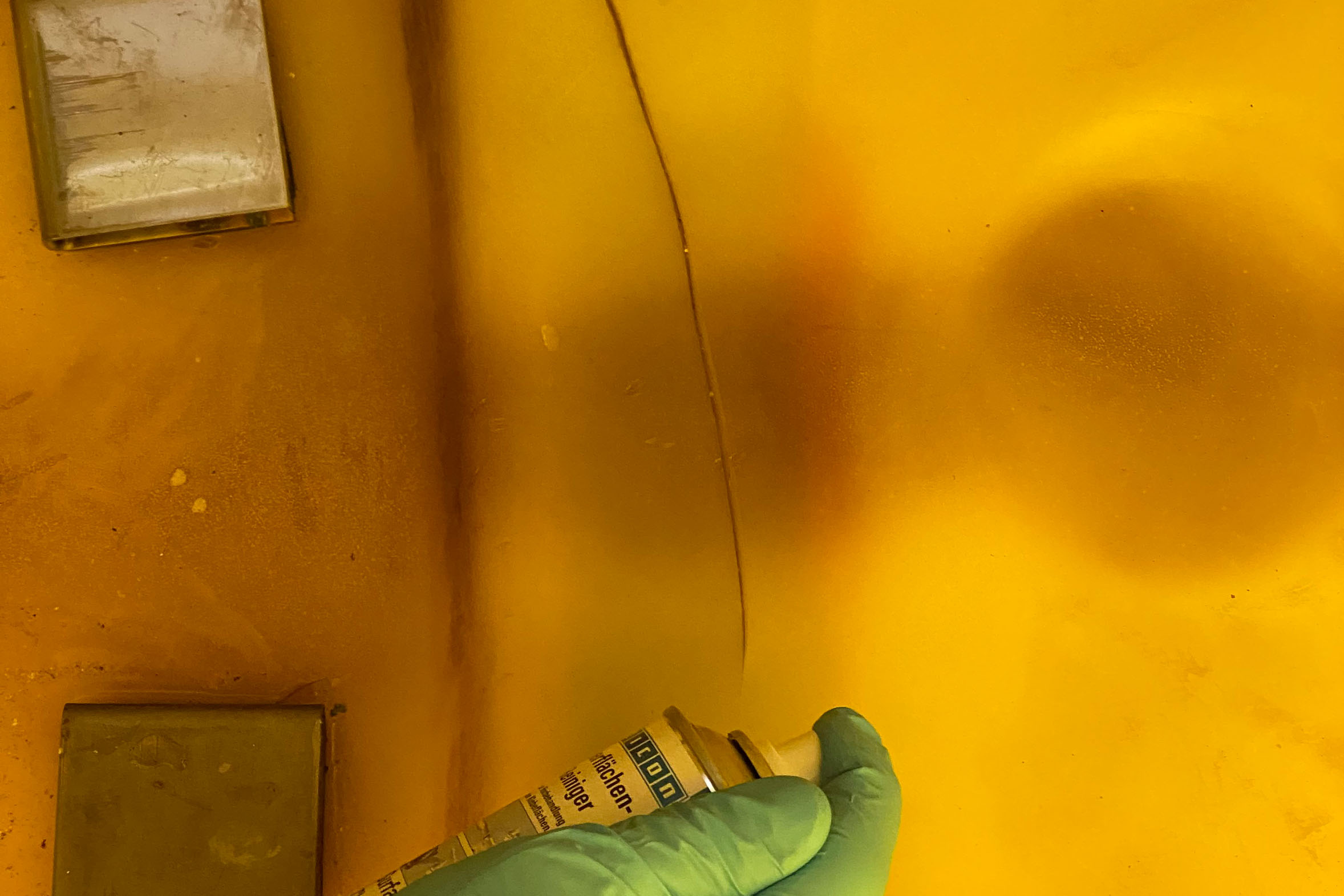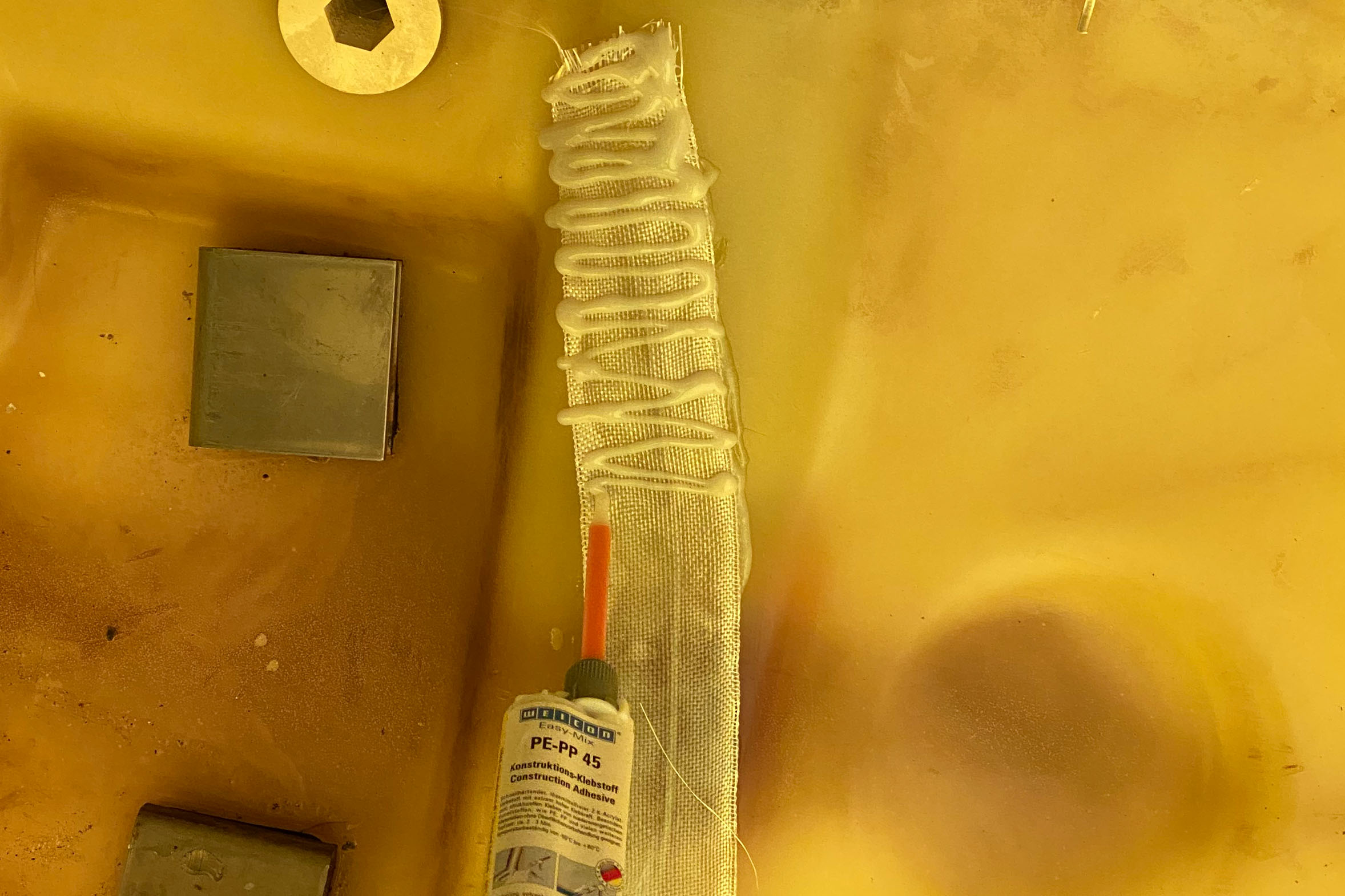Defektné alebo poškodené polyetylénové nádrže predstavujú v poľnohospodárstve veľký problém, pretože sú nevyhnutné na skladovanie vody, hnojív alebo chemikálií. S WEICON Easy-Mix PE-PP 45 sa dajú opravy vykonať rýchlo a hospodárne bez potreby nákupu nového materiálu. Po dôkladnom očistení s WEICON Čističom povrchov sa nanesie lepidlo, obviaže sa bandážou alebo páskou zo sklených vlákien a potom sa utesní ďalšou vrstvou WEICON Easy-Mix PE-PP 45. Optimálna priľnavosť sa dosiahne manuálnym nanášaním lepidla. Po 24 hodinách vytvrdzovania pri izbovej teplote je nádrž opäť plne funkčná.