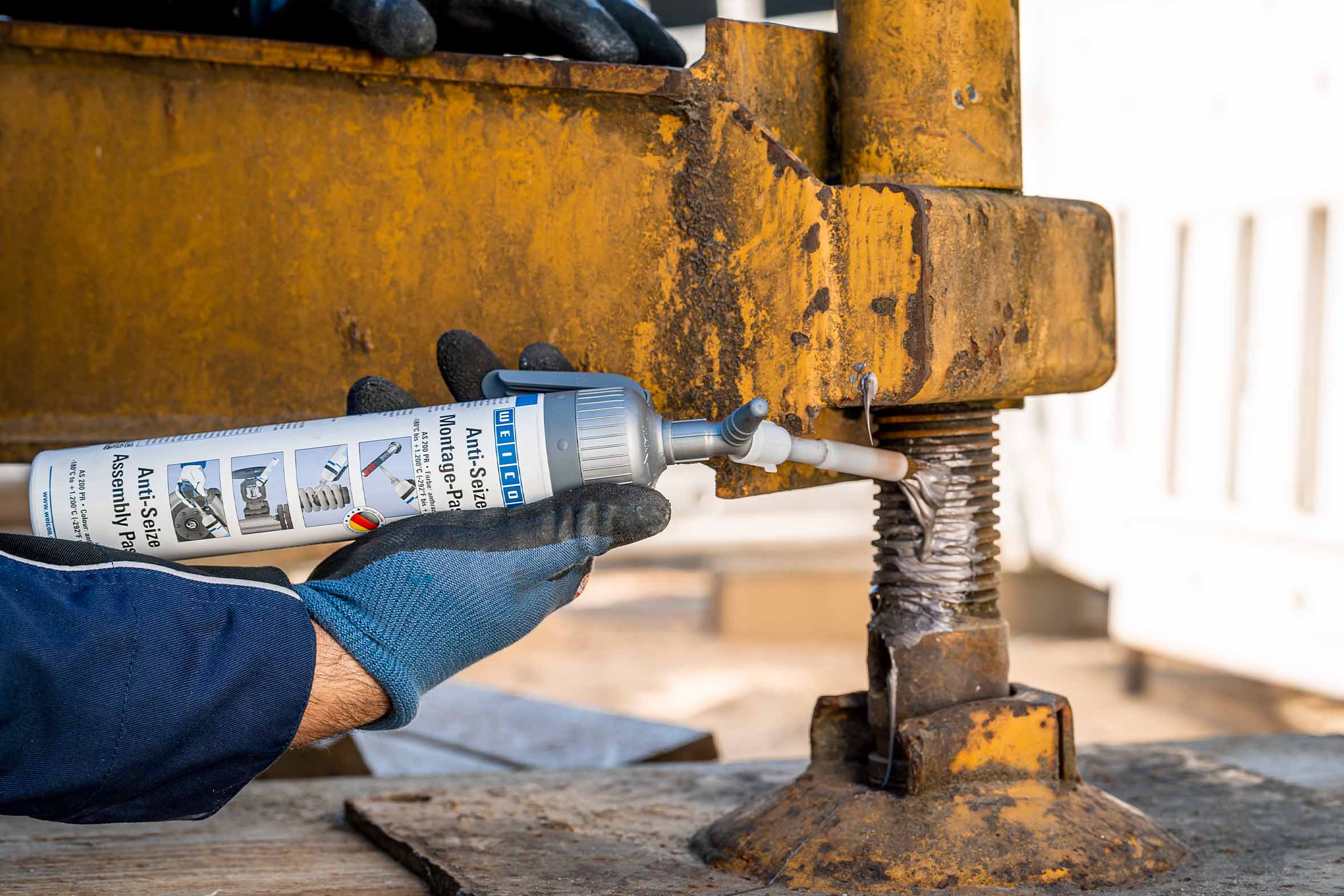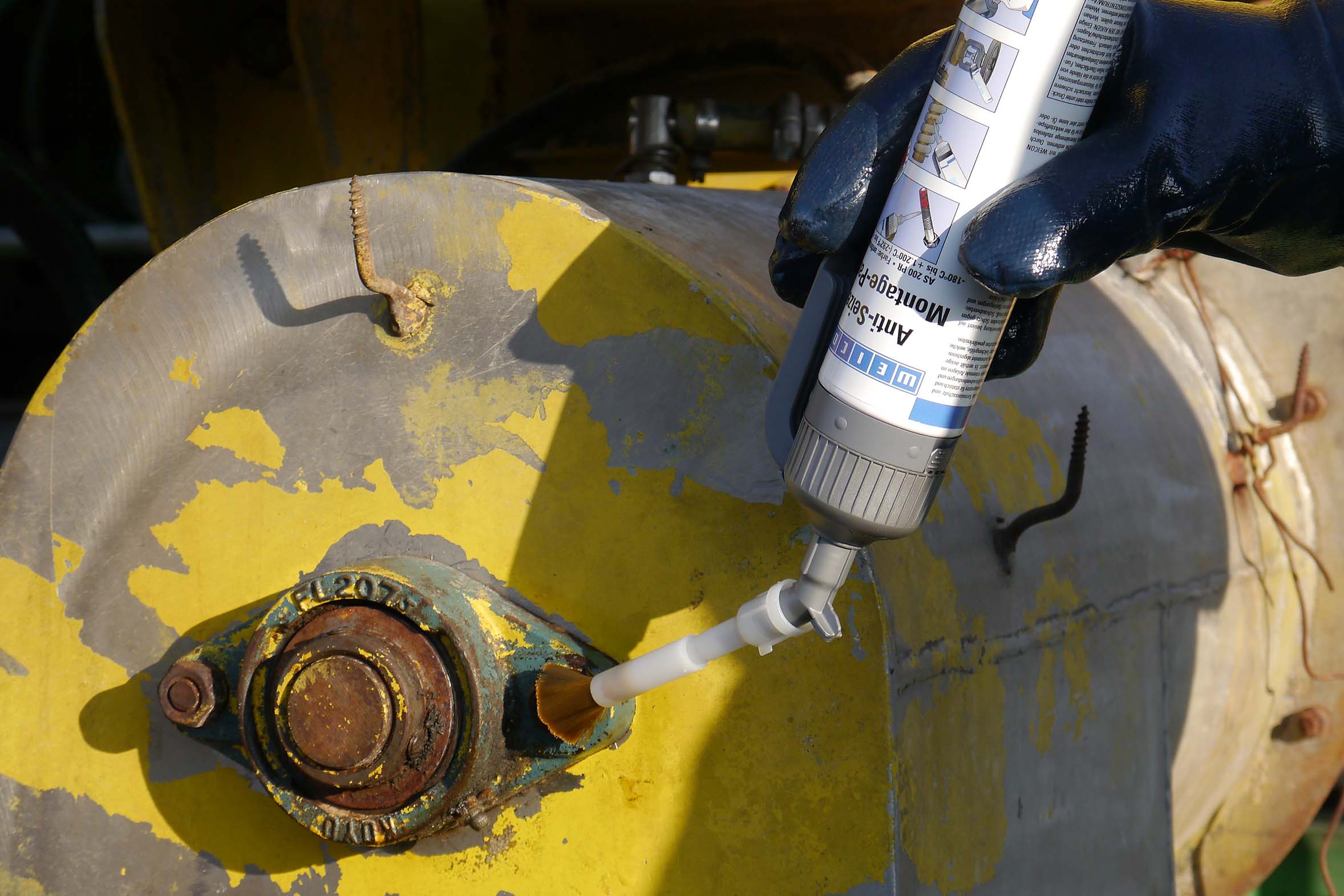 WEICON Anti-Seize uľahčuje uvoľňovanie skrutkových spojov na prívesoch a strojoch a chráni skrutky, závesy a kĺbové spojky. V dojárňach a systémoch na miešanie krmív zabraňuje zlepeniu spojov z nehrdzavejúcej ocele.