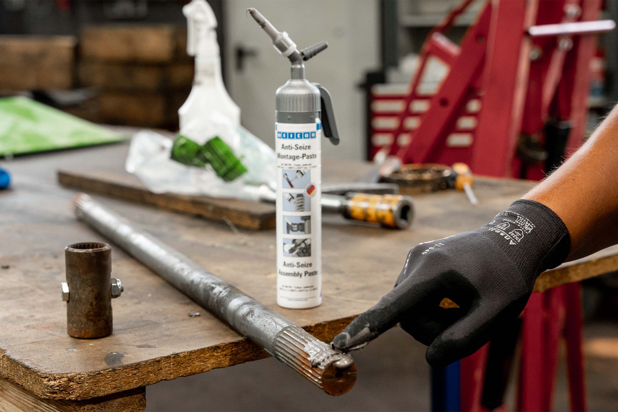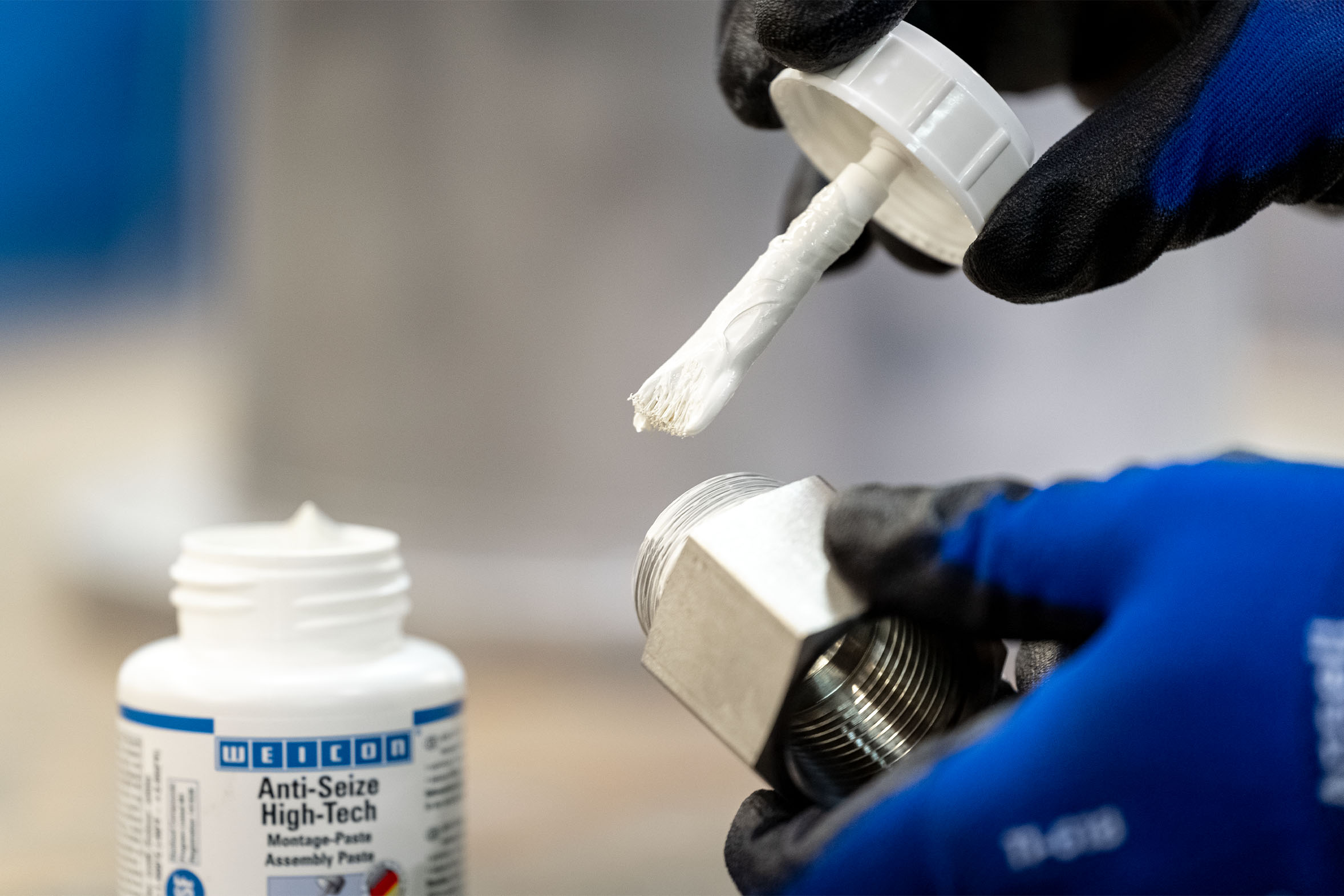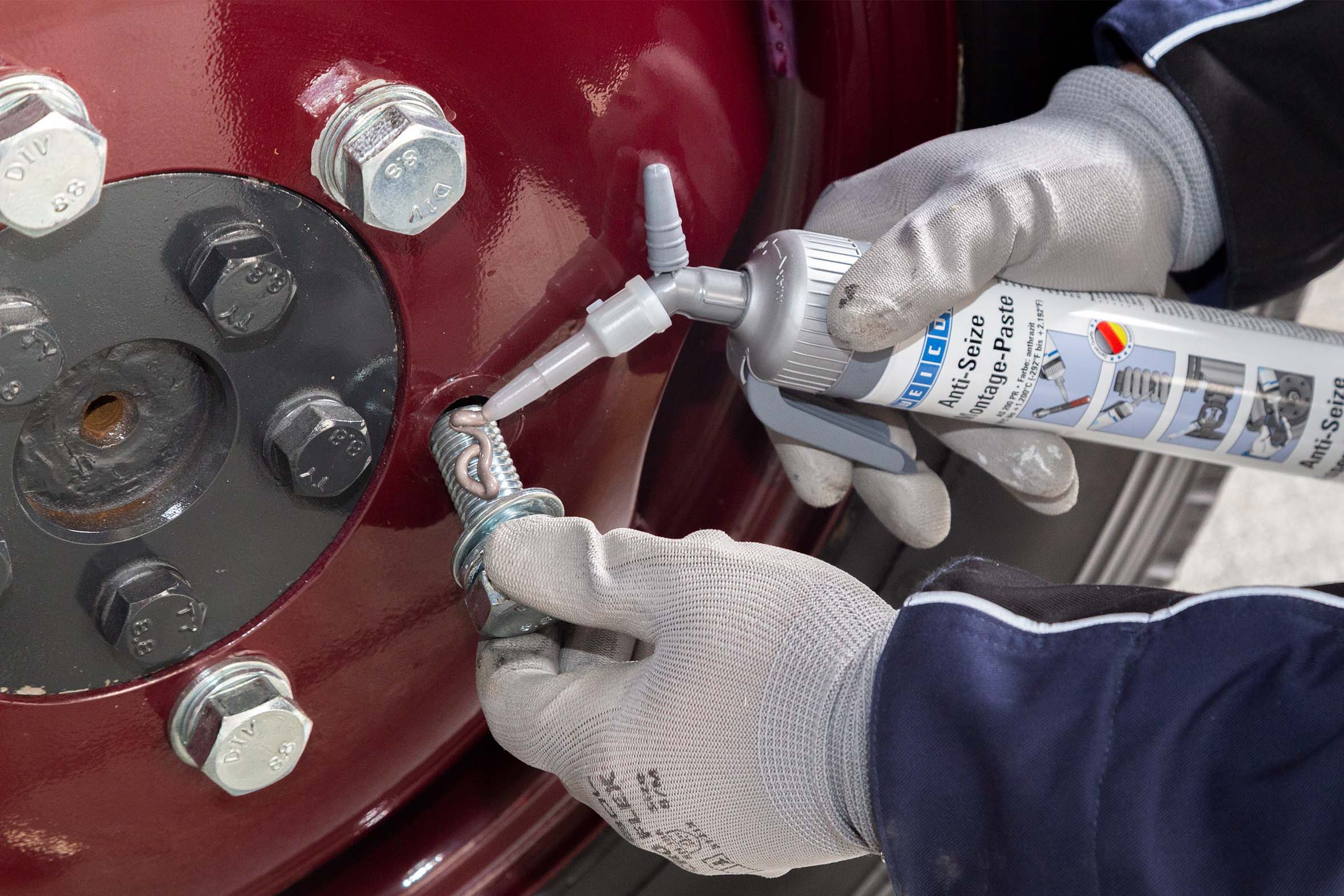 WEICON Medená pasta je vhodná pre vysokoteplotné aplikácie, napr. brzdové systémy, rezacie jednotky a výfukové spoje, a zabraňuje horeniu.