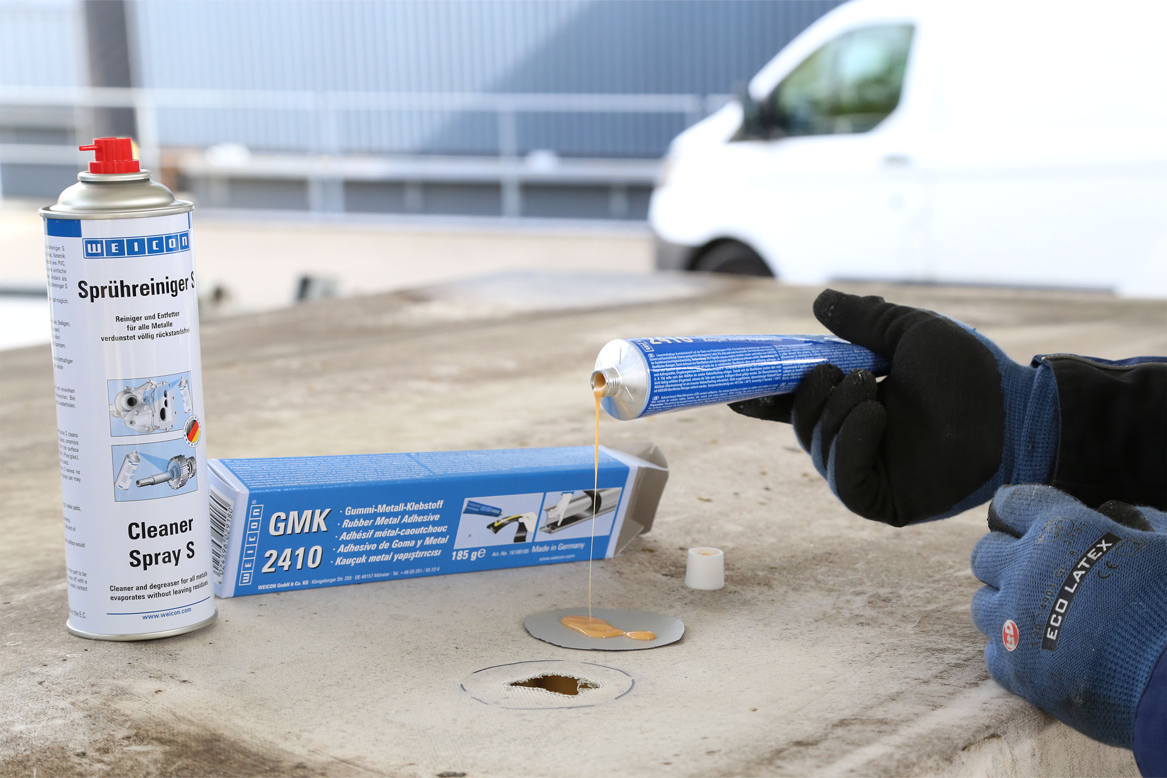 V poľnohospodárskej technike musia lepené spoje odolávať vysokému mechanickému zaťaženiu, vlhkosti a teplotným výkyvom. WEICON GMK 2410 je ideálny na rýchle a pevné lepenie gumy na kov, plast a iné materiály. Okrem iného sa používa na spoľahlivé pripevnenie gumových plôch na posuvné zariadenia na krmivo, tesniacich prvkov na kŕmne a vodné systémy alebo protišmykových rohoží v prepravníkoch hospodárskych zvierat. Vďaka vysokej počiatočnej priľnavosti a krátkemu času vytvrdzovania umožňuje efektívne spracovanie bez dlhých prestojov.