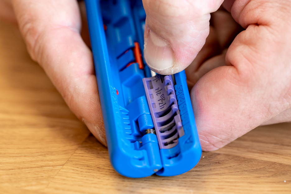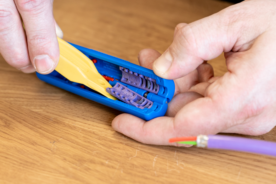 Schnitt optimiert für FastConnect-Steckverbinder | optische Längenskalierung optimiert für verschiedene Steckertypen | modulares Messerpaar für Profibus
