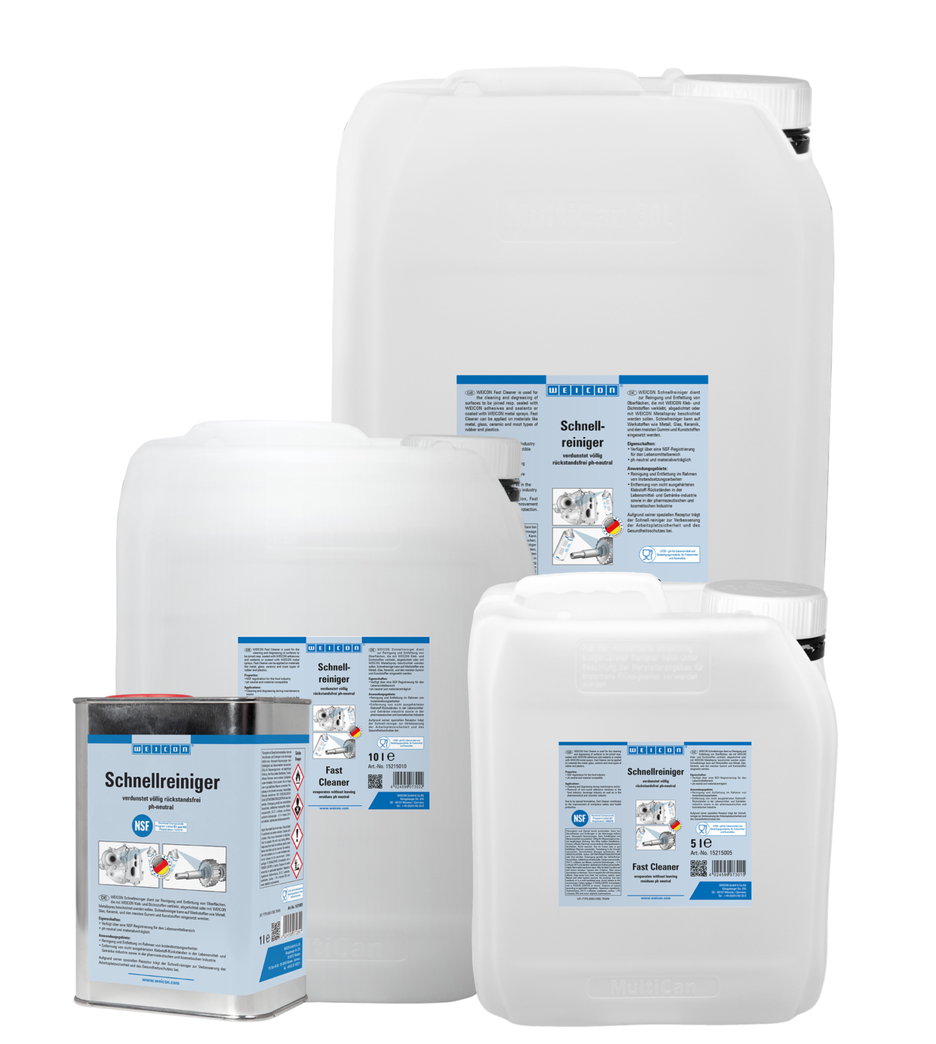 Rýchly čistič sa používa na očistenie a odmastenie povrchov, ktoré budú lepené s WEICON lepidlami a tesniacimi hmotami, prípadne utesňované, alebo majú byť povrchovo upravené s WEICON sprejmi s obsahom kovov. Rýchly čistič je pH-neutrálny, kompatibilný s materiálmi, a môže byť použitý na mnohých materiáloch, ako napr. kovy, sklo, keramika a väčšina plastov. Na základe jeho špeciálneho zloženia a z toho vyplývajúcej NSF registrácie,môže tento Rýchly čistič prispieť k zlepšeniu bezpečnosti pracoviska a ochrany zdravia.