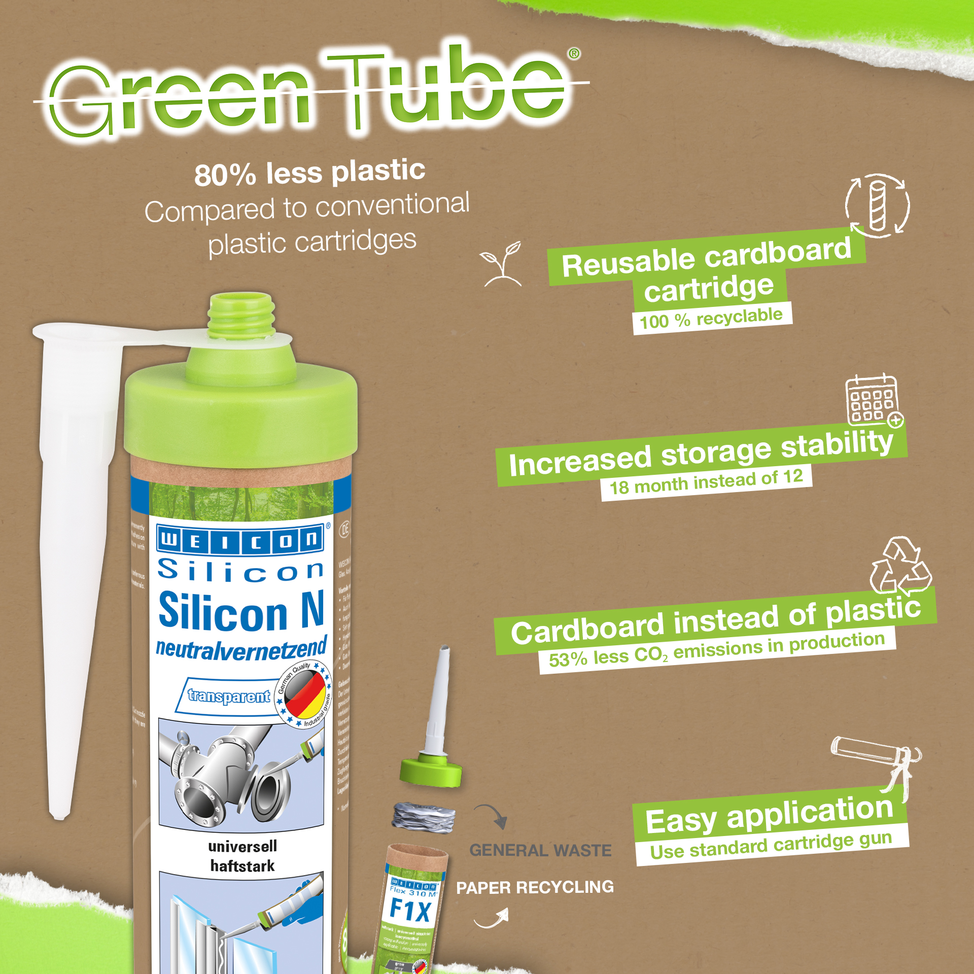 WEICON Silicon N neobsahuje rozpúšťadlá, je neutrálne tvrdnúci, nekoroduje, je vysoko priľnavý, trvalo elastický, odolný voči poveternostným vplyvom, starnutiu, chemikáliám a teplotám do +180 °C (+356 °F), mimoriadne pružný (predĺženie pri pretrhnutí približne 550 %) a univerzálne použiteľný. Silicon N veľmi dobre priľne na všetky kovy, sklo, keramiku a mnohé ďalšie materiály. Silicon N sa môže používať pri spracovaní plastov, v elektrotechnickom priemysle, v energetickej technike, v osvetľovacom priemysle, pri montáži výstavných stánkov a obchodov a v mnohých ďalších oblastiach priemyslu.