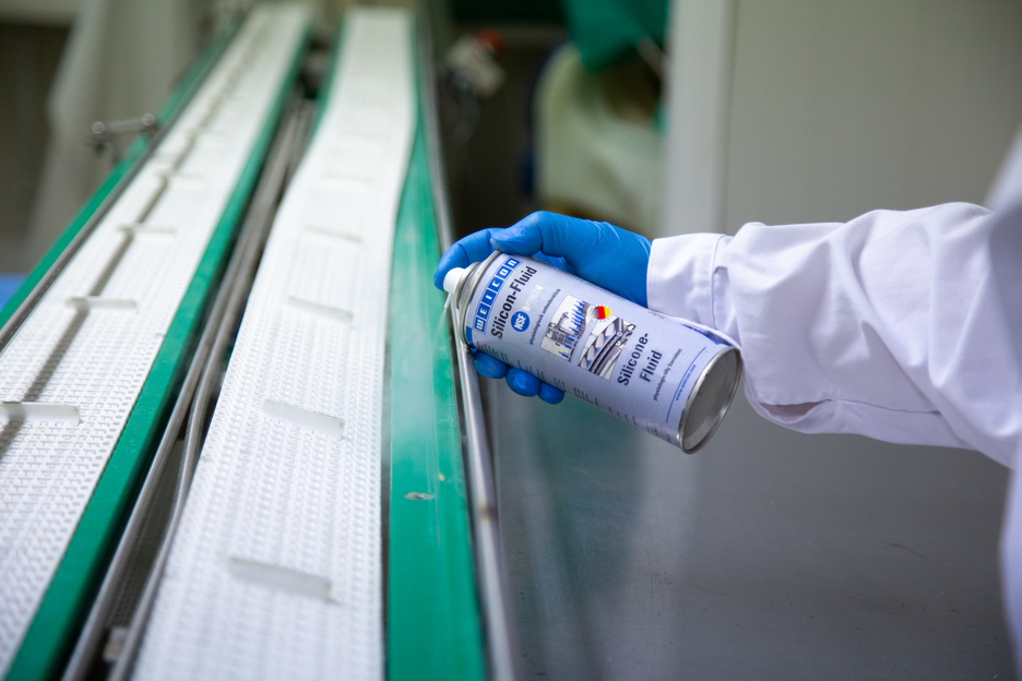 WEICON Silikón-Fluid je špeciálne, fyziologicky bezpečné mazivo pre citlivé oblasti. Má schválenie NSF H1 pre potravinársky priemysel, a preto sa môže používať v potravinárskom, nápojovom, farmaceutickom a kozmetickom priemysle. Sprej sa používa ako separačný, ochranný a ošetrujúci prostriedok a možno ho aplikovať na širokú škálu povrchov, ako sú plasty, kovy, nehrdzavejúca oceľ a guma. Silikón-Fluid zaisťuje dlhotrvajúci separačný film a dobrý vzhľad povrchu a je teplotne odolný do +250 °C (+482 °F). Vďaka svojmu špeciálnemu zloženiu a výslednému schváleniu NSF H1 slúži na zlepšenie bezpečnosti a ochrany zdravia na pracovisku.