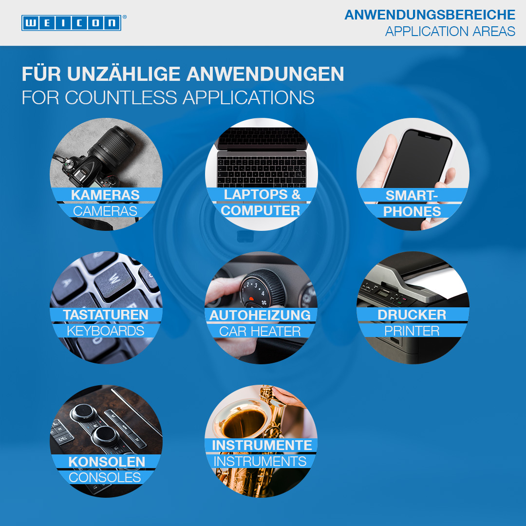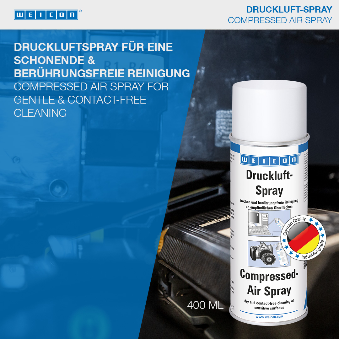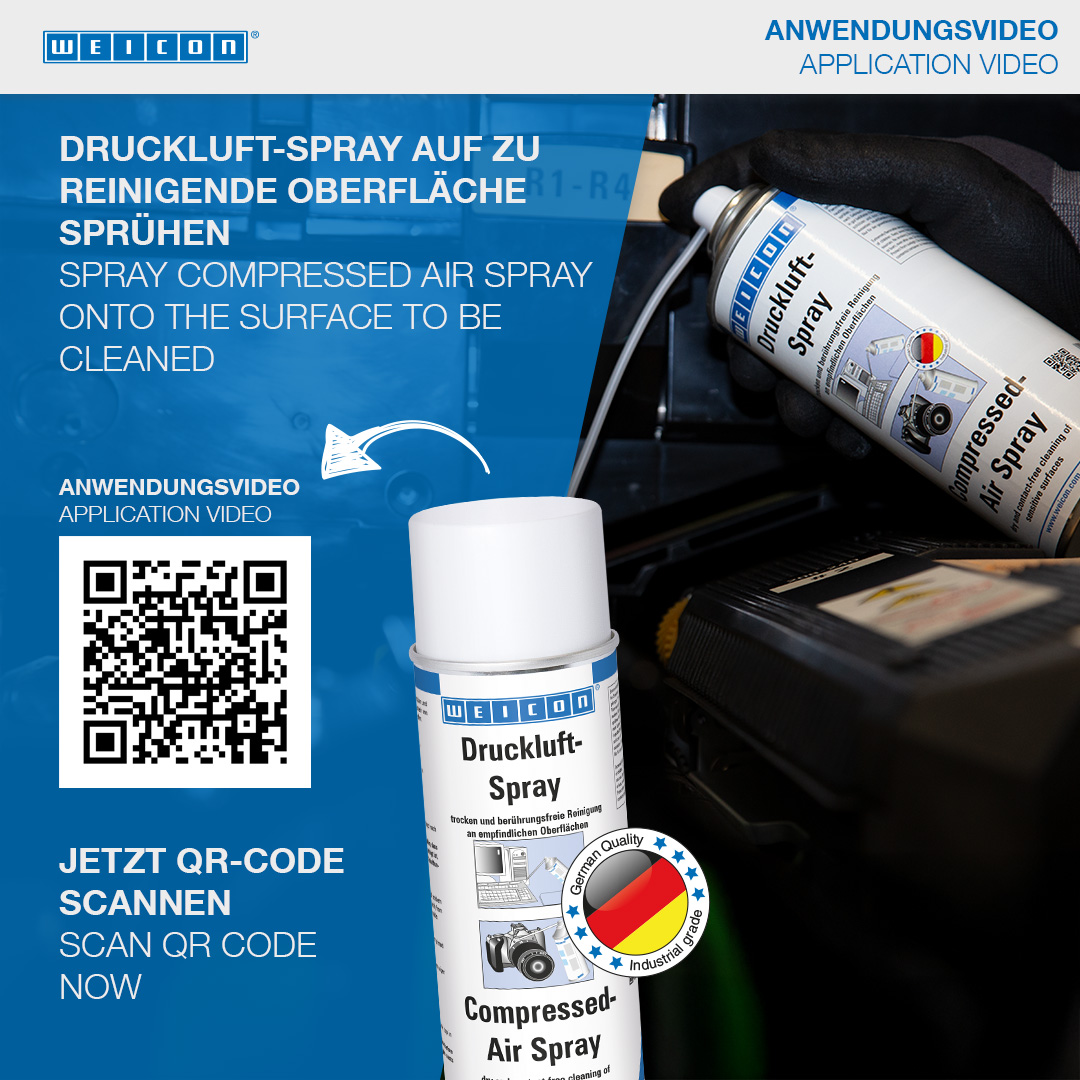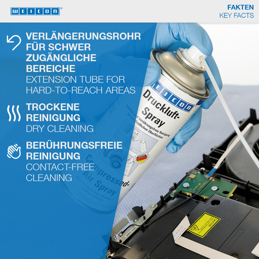 WEICON Stlačený vzduch je možné p o u ž i ť v š a d e t a m , k d e s a p r a c h obvyklými spôsobmi odstraňuje len ťažko. Umožňuje suché bezdotykové čistenie aj v neprístupných kútoch a na citlivých povrchoch.