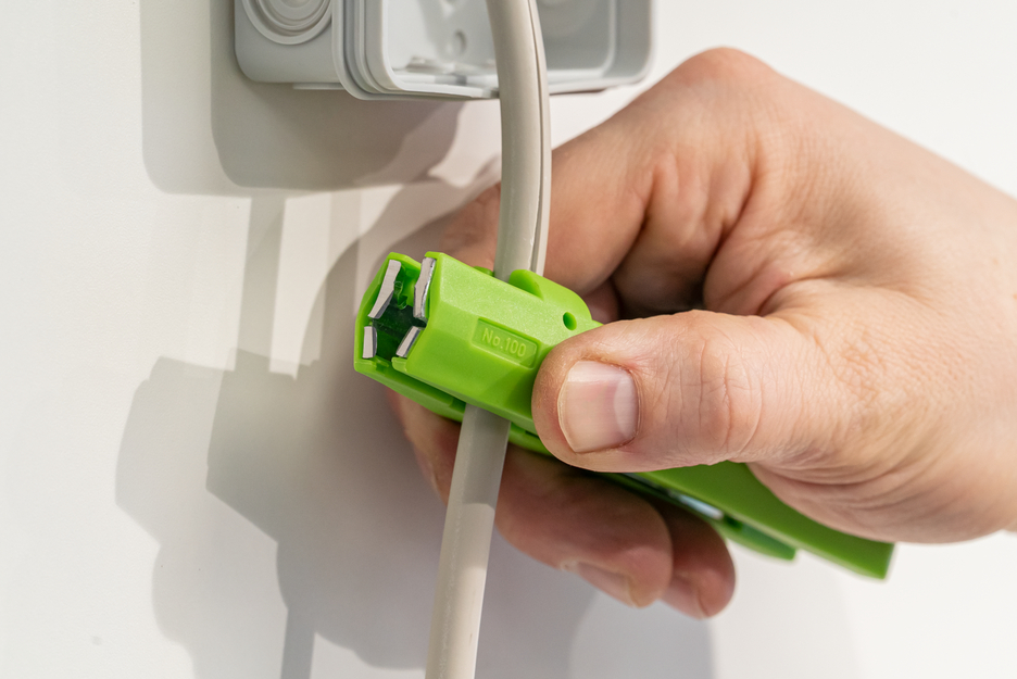Nachhaltiges Abisolierwerkzeug I Universalwerkzeug zum Abisolieren von Kabeln I Bündiges Abisolieren an Wänden und Decken I Rund- und Längsschnitt I Arbeitsbereich 0,5 - 16 mm² / 4 - 13 mm Ø I Für viele verschiedene Kabeltypen in der Hausinstallation