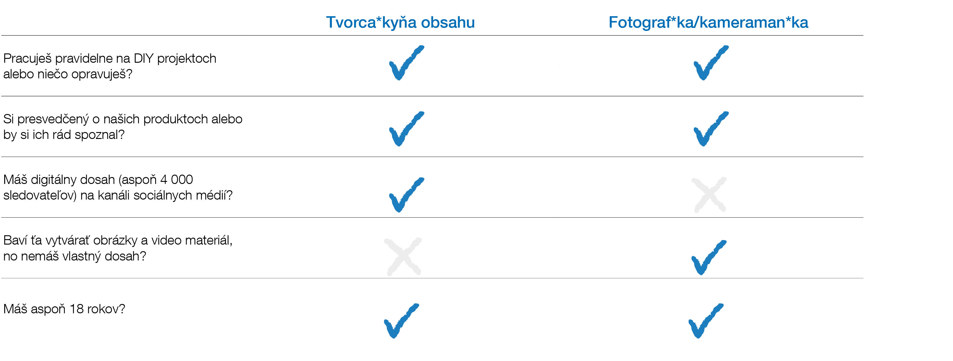 Neustále hľadáme kooperačných partnerov, ktorí môžu využívať a prezentovať naše produkty vo svojich projektoch alebo vytvárať príťažlivý obsah, ktorý môžeme použiť. Či už pri elektroinštalácii, v dielni, pri prestavbe karavanu alebo na farme, určite máme v portfóliu produkt, ktorý vám pomôže úspešne zrealizovať váš projekt. Zistite, či sa k nám hodíte ako tvorca obsahu alebo fotograf/videograf. Ak by ste sa chceli stať súčasťou nášho tímu tvorcov, jednoducho vyplňte formulár nižšie, možno sa čoskoro stanete súčasťou nášho tímu!