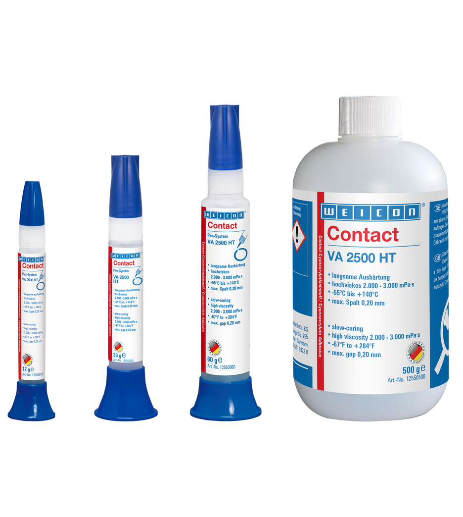 Vďaka vytvrdzovaniu so zvyškovou elasticitou je WEICON Contact VA 2500 HT obzvlášť vhodný pre meniace sa klimatické podmienky. Nie je citlivý aj na dlhšie trvajúce vplyvy vlhkosti. Contact VA 2500 HT je vhodný na lepenie širokej škály gumených materiálov a plastov, ako aj na spoje kov/plast. VA 2500 HT je možné použiť v mnohých oblastiach priemyslu.