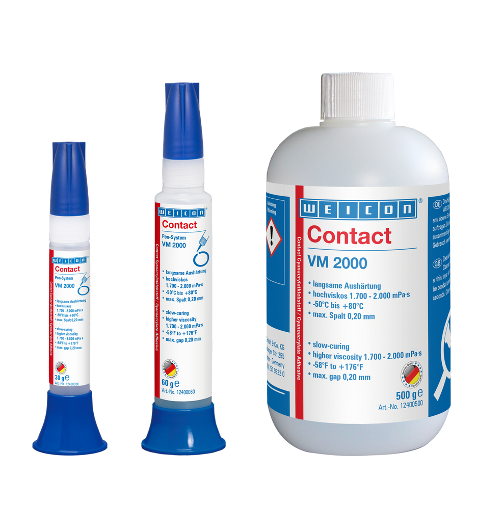 WEICON Contact VM 2000 je vhodný pre lepenia všetkých druhov kovov a možno ho použiť aj na savé a porézne materiály. Contact VM 2000 je možné použiť v kovospracujúcom priemysle, v strojárenstve, v bytovej a prístrojovej technike a v mnohých ďalších oblastiach.