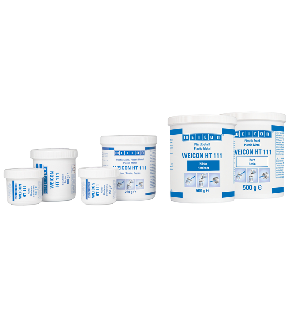 Systém epoxidovej živice WEICON HT 111 sa používa na opravy a vylepšenia kovových dielov. Je pastovitá, plnená oceľou a odolná proti vysokým teplotám až do 200 °C (392 °F); krátkodobo odoláva teplotám až do 280 °C / 536 °F. WEICON HT 111 je odolný proti chemikáliám, nekoroduje a používa sa v zmiešavacom pomere 1:1 Systém epoxidovej živice je vhodný aj pre spracovanie na zvislých plochách a je možné ho použiť na opravu a lepenie odliatkov a kovových dielov, na vyplnenie dier, na opravu poškodení nádob, karosérií a častí strojov a na utesnenie čerpadiel a potrubí. Kompozitný materiál je vďaka svojim vlastnostiam obzvlášť vhodný pre aplikácie pri výrobe strojov a zariadení, vo výrobe prístrojov a v mnohých ďalších oblastiach priemyslu.