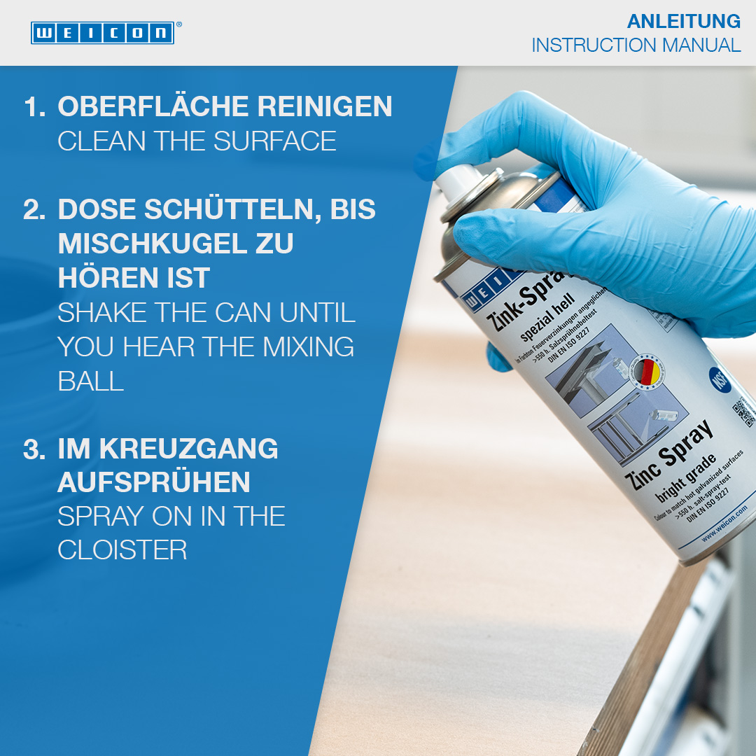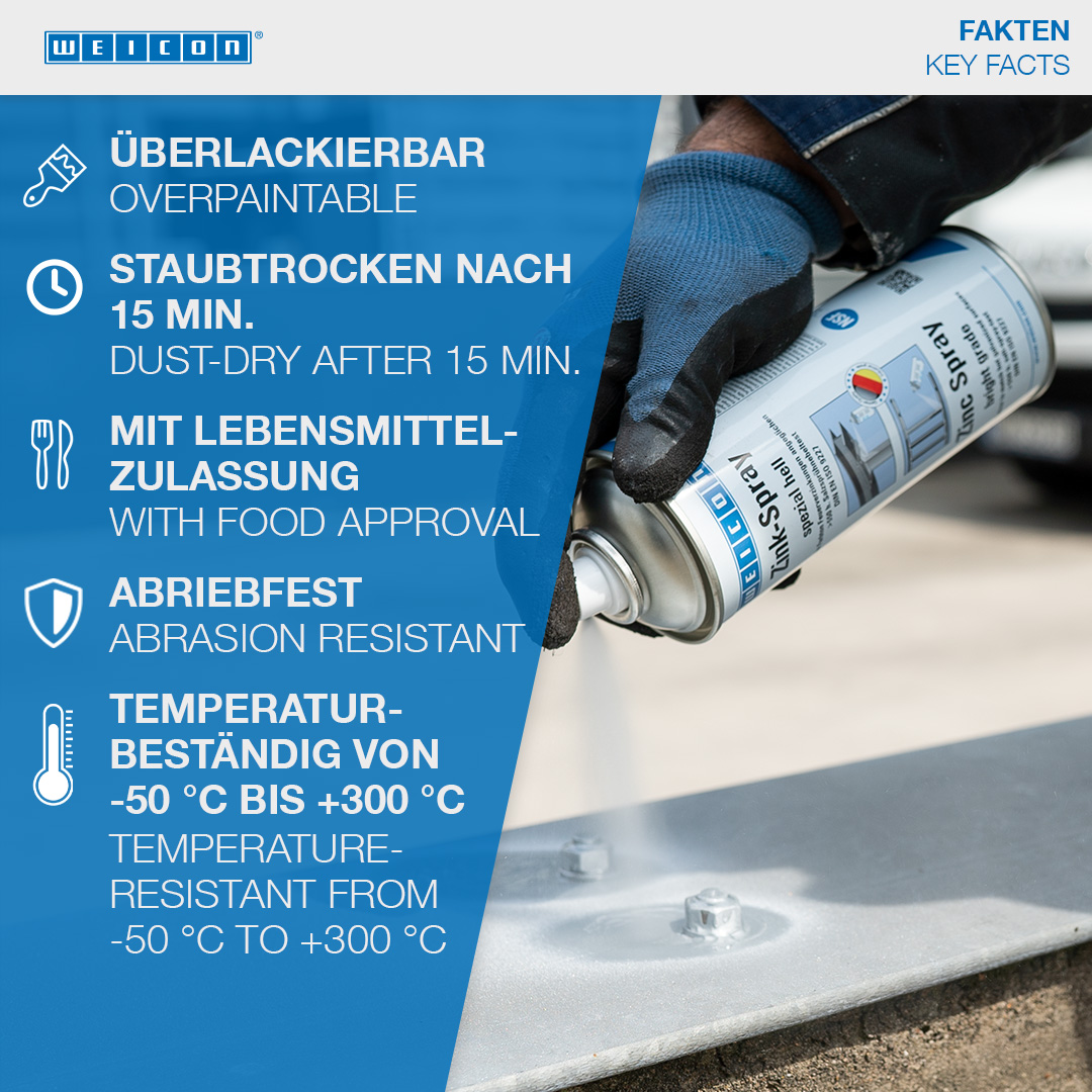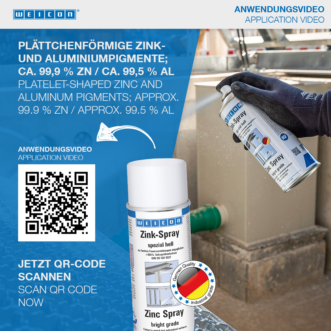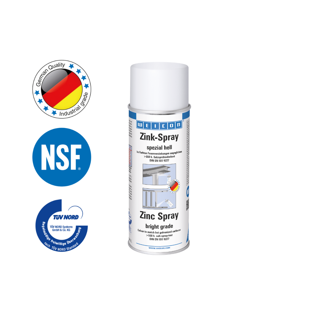 Zinkový sprej “špeciál svetlý“ je certifikovaný v TÜV. Kovovým povrchom zaisťuje dlhodobú katódovú protikoróznu ochranu v odtieni podobnému ako žiarové pozinkovanie. Vytvára rýchloschnúcu a pevne priľnavú ochrannú vrstvu z mikroskopických zinkových vločiek . Zinkové vločky tvoria odolnú ochrannú vrstvu aj proti extrémnym vplyvom klímy a prostredia. Zinkový sprej “špeciál svetlý“ možno použiť ako vysoko kvalitný podklad pod protikoróznu ochranu, na náter zvarených spojov a vŕtaných otvorov, ako vodivú medzivrstvu pri bodovom zváraní a všade tam, kde je nutná ochrana proti korózii.