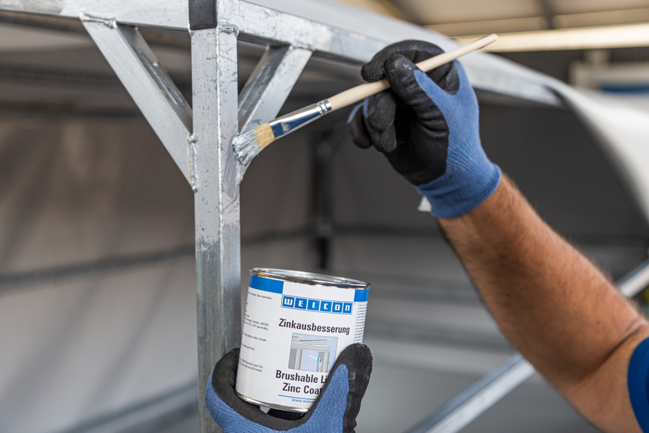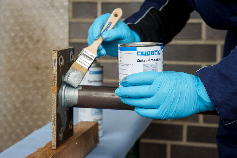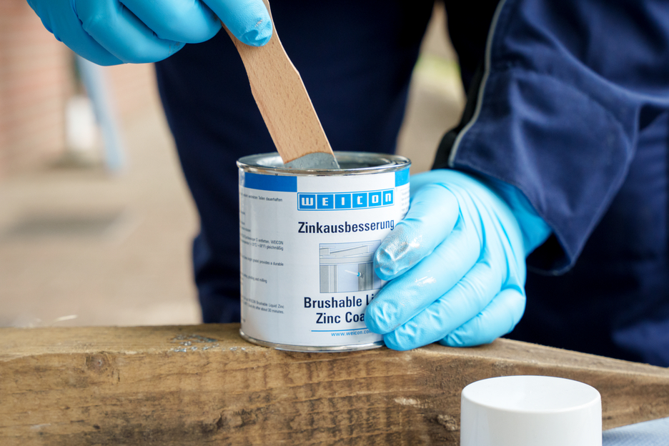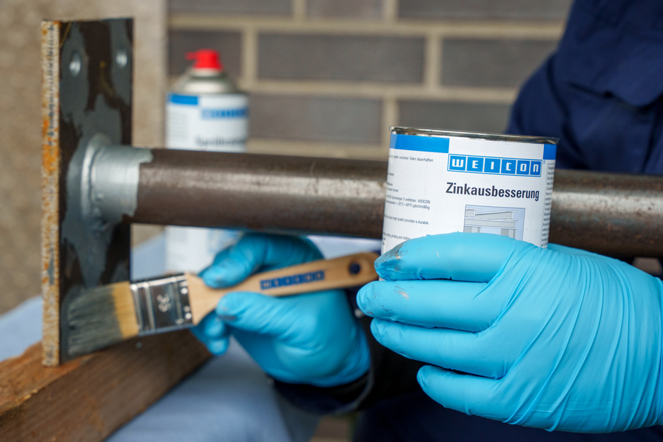 WEICON Zinok-prášková farba na opravy je aktívna korózna ochrana pre všetky kovové plochy, s odtieňom podobným ako žiarové pozinkovanie. Pri aplikácii WEICON Zinok-práškovej farby na opravy sa doštičkové, šupinové pigmenty (vločky) ukladajú na podklad vo viacerých vrstvách (navzájom sa prekrývajúcich) ako tašky na streche. Tým je povrch dlhšie chránený pred vlhkosťou. Optimálna protikorózna ochrana sa docieľuje v spojení so súčasným elektrochemickým účinkom.